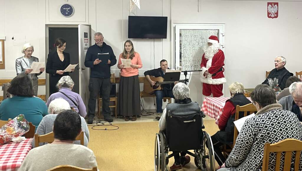 20 stycznia nasz Dom odwiedzili przedstawiciele Wspólnoty Betania z Lesznowoli wraz z ks. kanonikiem Włodzimierzem Bobrykiem, proboszczem naszej parafii. Spotkanie miało charakter świąteczny i było okazją do wspólnego kolędowania oraz przeżywania radosnej atmosfery Bożego Narodzenia. Podopieczni DPS z dużym zaangażowaniem uczestniczyli we wspólnym śpiewaniu kolęd, a przygotowane upominki sprawiły im wiele radości i wzruszenia. Spotkanie przebiegło w serdecznej, ciepłej atmosferze, sprzyjającej integracji i budowaniu relacji. Wspólnota Betania Lesznowola to grupa modlitewno-ewangelizacyjna działająca przy Parafii bł. Honorata Koźmińskiego w Lesznowoli, organizująca regularne spotkania formacyjne i modlitewne. Jej członkowie chętnie angażują się w działania na rzecz lokalnej społeczności, dzieląc się swoim czasem, obecnością i dobrym słowem.
